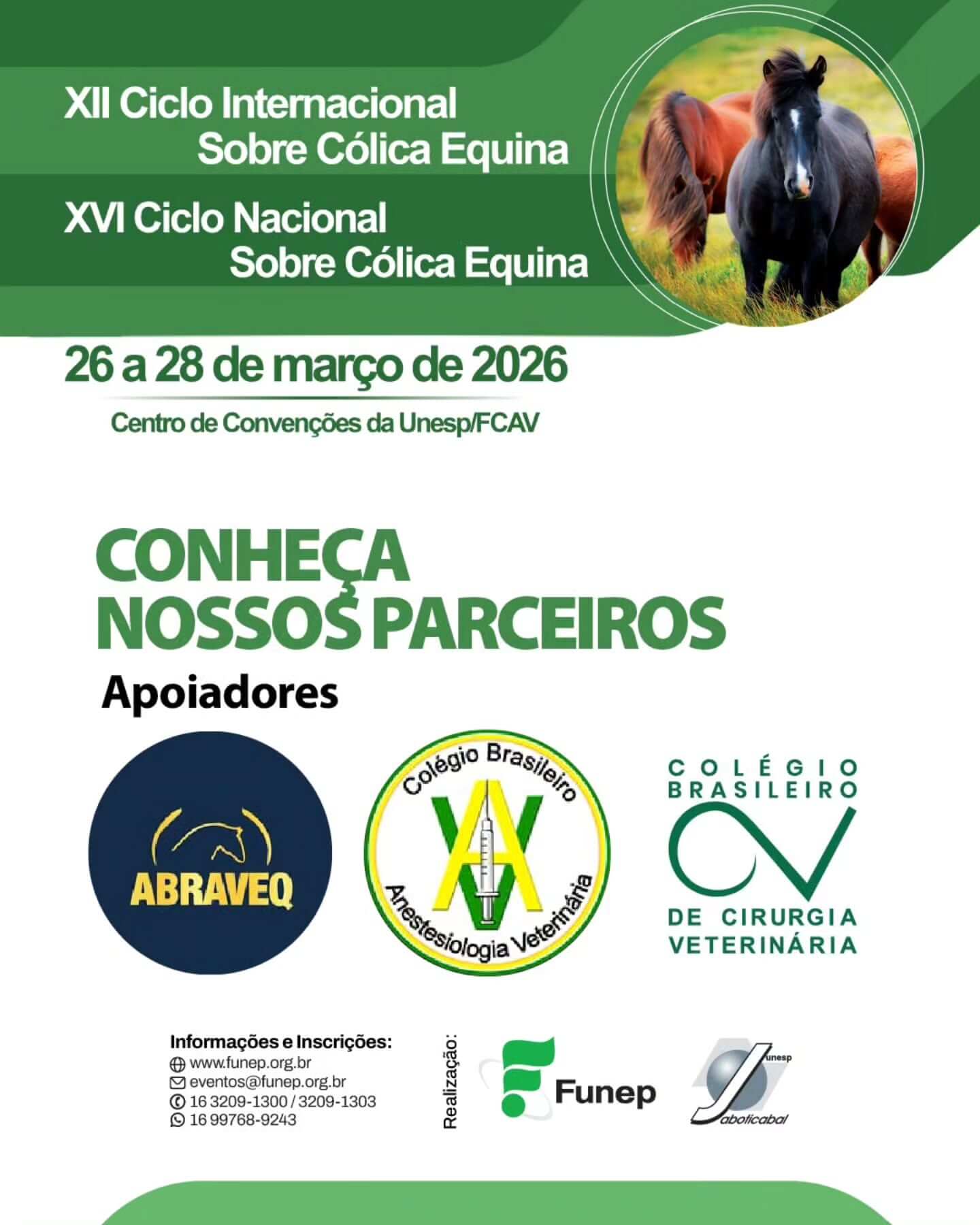 Participe do XII Ciclo Internacional e XVI Ciclo Nacional sobre Cólica Equina, na Unesp/FCAV – Jaboticabal de 26 a 28 de março de 2026.